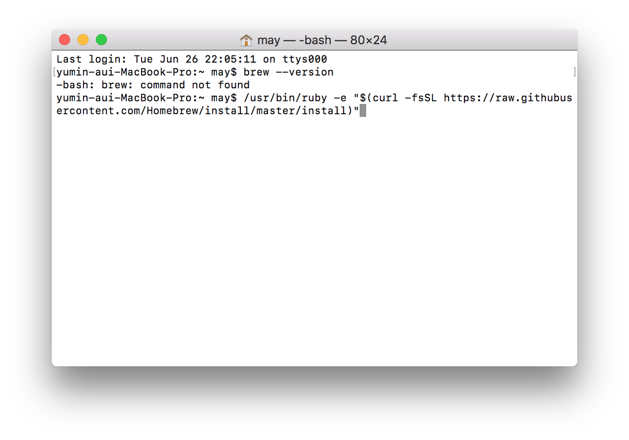 먼저 홈브루를 내 컴퓨터에 설치했는지 터미널에 brew --version을 입력해 확인한다. -bash: brew: command not found가 나와 없다는 것을 확인한다.