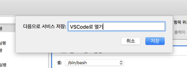 7. "VSCode로 열기"라는 이름으로 저장합니다.