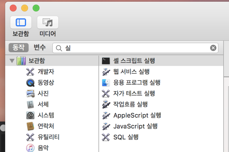 5. 왼쪽 화면에서 "셸 스크립트 실행"을 선택합니다.