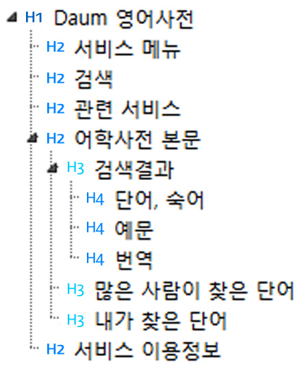 - H2 : 메인메뉴, 본문, 이용약관 등