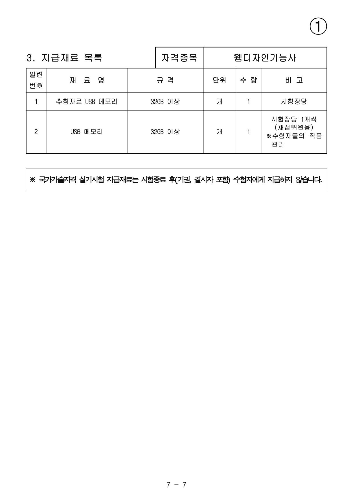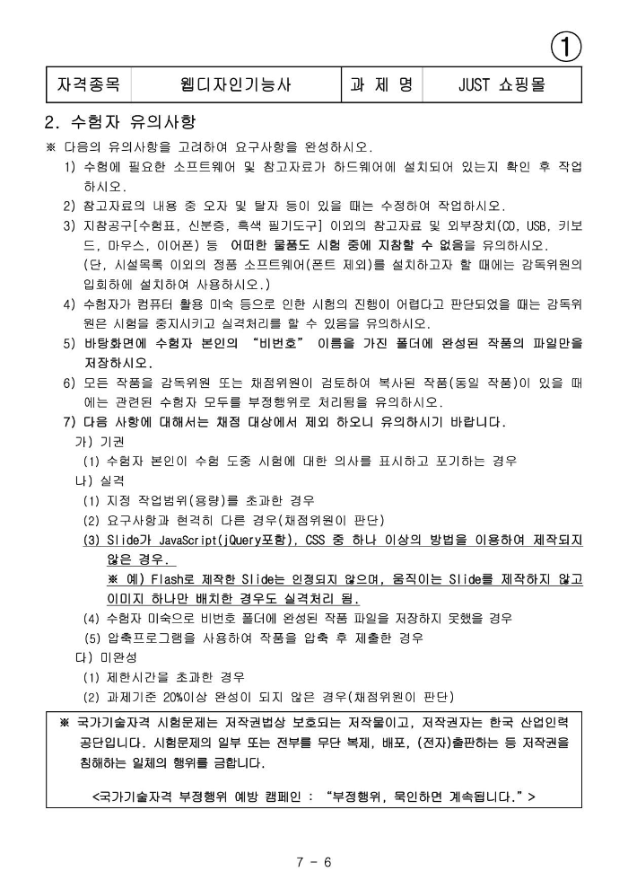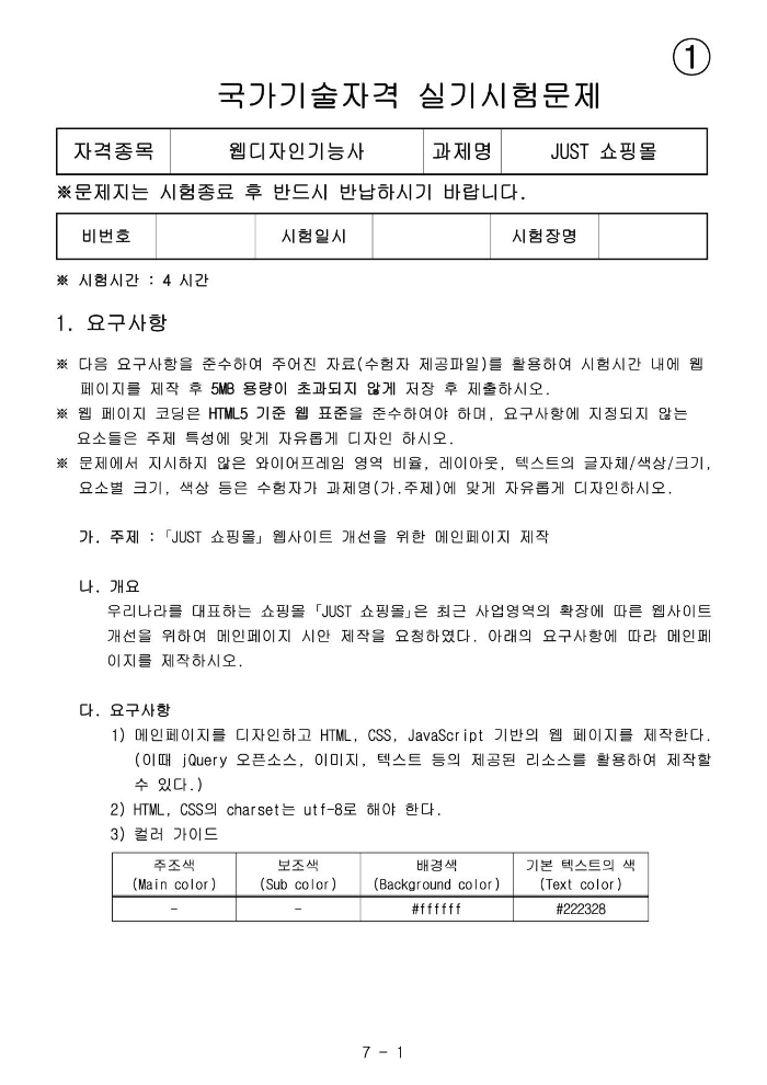 - 시험시간 내에 웹페이지를 제작 후 5MB 용량이 초과되지 않게 저장 후 제출한다.