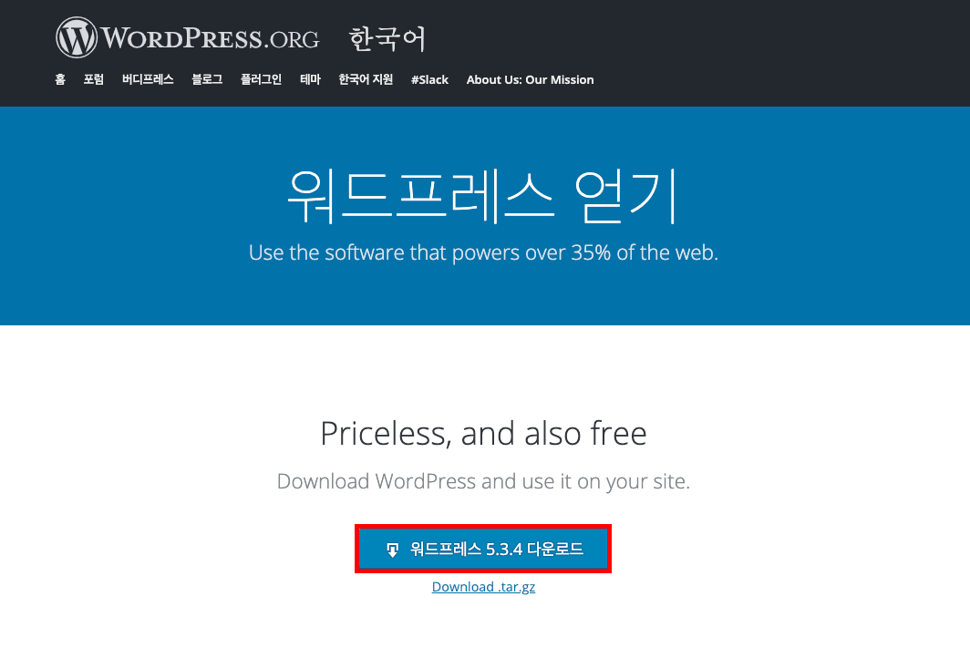 아래 링크를 눌러 워드프레스 zip 파일을 다운 받은 후 압축을 풀어줍니다.