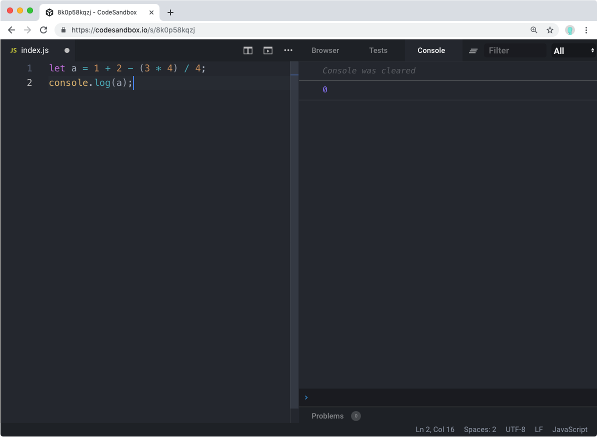 let a = 1 + 2 - (3 * 4) / 4;
